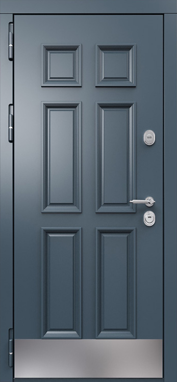 Дверь стальная МДФ эмаль №563 — это удачное сочетание надежной металлической основы и аккуратной декоративной отделки. Каркас из профильной трубы и стальной лист толщиной 2 мм обеспечивают прочность и устойчивость к взлому, а ребра жесткости повышают общий ресурс эксплуатации. Важной особенностью модели является наличие терморазрыва в коробке и полотне: конструкция эффективно препятствует промерзанию зимой, исключает появление конденсата и сохраняет тепло в помещении. Панели МДФ с ПВХ-покрытием, использованные с обеих сторон, защищены от влаги и мелких механических повреждений, благодаря чему дверь долго сохраняет привлекательный внешний вид. Два контура резинового уплотнителя дополнительно усиливают защиту от сквозняков и уличного шума. Такая дверь органично подходит для частных домов, квартир и офисов, сочетая в себе надежность стали и практичность современной отделки. Дверь стальная МДФ эмаль №563 от производителя: быстрое изготовление и монтаж в Протвино, индивидуальные размеры, широкий выбор материалов и фурнитуры, официальная гарантия до 10 лет.