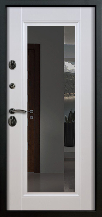 Металлическая входная дверь с зеркалом внутри №1 создана как универсальное решение для дома, квартиры или офиса, где важны и безопасность, и комфорт. Каркас выполнен из прочной профильной трубы с металлическим листом толщиной 2 мм и рёбрами жёсткости, что обеспечивает устойчивость к механическим воздействиям и долгий срок службы. Снаружи дверь покрыта порошковой окраской, стойкой к атмосферным влияниям и царапинам, а изнутри отделана МДФ с ПВХ-покрытием, которое сохраняет свежий вид даже при интенсивной эксплуатации. Встроенное зеркало превращает полотно в практичный элемент интерьера: оно визуально расширяет пространство прихожей и избавляет от лишних предметов мебели. Два контура уплотнителей защищают от пыли и сквозняков, а блокираторы усиливают общую надёжность конструкции. Модель не оснащена терморазрывом, зато отличается продуманным балансом практичности и доступной цены, оставаясь удобным вариантом для повседневного использования. Металлическая входная дверь с зеркалом внутри №1 от производителя: быстрое изготовление и монтаж в Протвино, индивидуальные размеры, широкий выбор материалов и фурнитуры, официальная гарантия до 10 лет.
