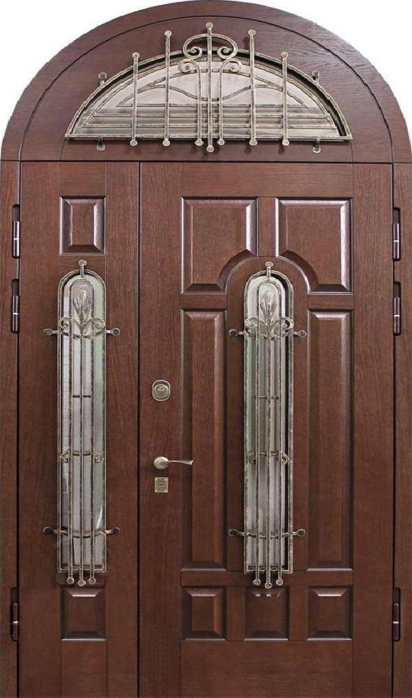 Арочные конструкции всегда придают входу выразительность и особый статус, а если добавить две створки и стеклянные вставки, дверь превращается в центральный элемент фасада. Натуральное дерево в отделке подчеркивает солидность и гармонично сочетается с металлом, из которого выполнено основание: каркас и полотно из профильных труб и стальной лист толщиной 2 мм обеспечивают прочность и долговечность. Для удобства и безопасности используются два замка разного типа — сувальдный и цилиндровый, оба с тремя ригелями, что делает взлом крайне затруднительным. Двухстворчатая арочная дверь со стеклом в частный дом №14 может изготавливаться любого размера и адаптироваться под архитектуру конкретного здания. Возможна установка дополнительных элементов: зеркало, стеклопакет, кованые детали или даже видеодомофон. Резиновое уплотнение по двум контурам защищает от сквозняков, а возможность выбора отделки и фурнитуры открывает простор для индивидуального дизайна. Двухстворчатая арочная дверь со стеклом в частный дом №14 от производителя: быстрое изготовление и монтаж в Протвино, индивидуальные размеры, широкий выбор материалов и фурнитуры, официальная гарантия до 10 лет.
