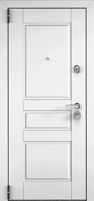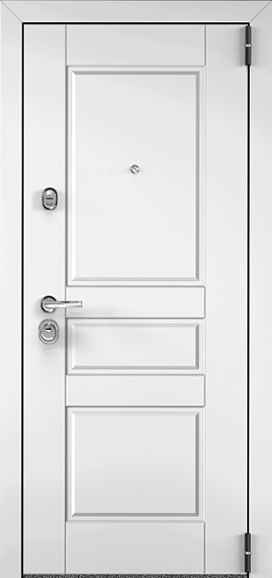 Белая металлическая дверь входная для дома №33 выделяется своим свежим и современным обликом. Универсальный белый цвет делает её уместной как в частном коттедже, так и в квартире или офисе, визуально добавляя простора и подчеркивая аккуратность фасада или интерьера. Конструкция двери основана на стальном листе толщиной 2 мм и усилена профильными трубами, что гарантирует надежность и устойчивость к нагрузкам. Важная особенность модели — наличие терморазрыва в полотне и коробке: благодаря этому дверь не промерзает в зимний период, исключается конденсат и сохраняется комфорт внутри помещения. Внешняя и внутренняя отделка выполнена из МДФ с ПВХ-покрытием, которое защищает поверхность от влаги и механических повреждений, сохраняя первозданный вид надолго. Два контура уплотнителя обеспечивают герметичность и дополнительную защиту от сквозняков. Эта дверь удачно сочетает эстетику и практичность, создавая надежный вход в любое жилище. Белая металлическая дверь входная для дома №33 от производителя: быстрое изготовление и монтаж в Протвино, индивидуальные размеры, широкий выбор материалов и фурнитуры, официальная гарантия до 10 лет.