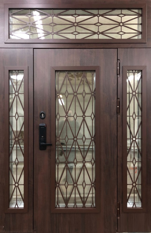 Входная дверь с декоративным рисунком и фрамугой №8 сочетает в себе элегантность и надёжность. Внешняя и внутренняя отделка из панелей МДФ с ПВХ покрытием обеспечивают долговечность и лёгкость в уходе, сохраняя стойкость к внешним воздействиям и механическим повреждениям. Каркас из профильной трубы 50x25 мм и лист металла толщиной 2 мм придают двери прочность, а ребра жесткости из труб 40x25 мм усиливают её устойчивость. Несмотря на отсутствие терморазрыва, конструкция двери с двумя контурами уплотнителей гарантирует отличную изоляцию от холода и шума. Такая дверь идеально подойдёт для установки в местах, где важен стильный внешний вид и безопасность. Входная дверь с декоративным рисунком и фрамугой №8 от производителя: быстрое изготовление и монтаж в Протвино, индивидуальные размеры, широкий выбор материалов и фурнитуры, официальная гарантия до 10 лет.