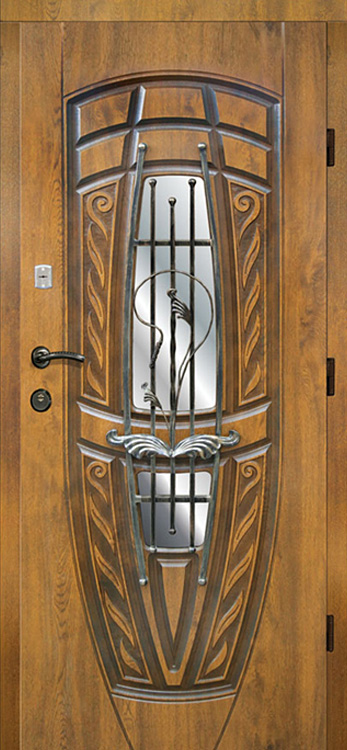 Для загородного дома важна дверь, которая умеет быть не только красивой, но и практичной. Натуральное дерево в отделке делает её внешне солидной и теплой, а декоративная ковка добавляет изящества и превращает вход в стильный акцент фасада. В основе конструкции лежит прочный стальной каркас с листом металла толщиной 1,5 мм и ребрами жесткости, а противосъёмные блокираторы обеспечивают дополнительный уровень защиты. Особого внимания заслуживает терморазрыв, выполненный в коробке и полотне: он надежно изолирует дом от холода, предотвращает промерзание и сохраняет уют даже при сильных морозах. Входная дверь уличная с ковкой №22 также оснащена тройным контуром магнитного уплотнения, что усиливает герметичность и помогает снизить шум. Конструкция позволяет выбирать размеры и дополнения по вкусу, включая стеклопакет, зеркало или видеодомофон, создавая гармонию между безопасностью, удобством и выразительным дизайном. Входная дверь уличная с ковкой №22 от производителя: быстрое изготовление и монтаж в Протвино, индивидуальные размеры, широкий выбор материалов и фурнитуры, официальная гарантия до 10 лет.