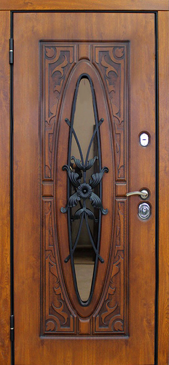 В частном доме дверь должна быть не просто барьером, а настоящей визитной карточкой, и именно эту задачу решает входная дверь со стеклом и ковкой №23. Натуральное дерево в отделке придает ей благородный и теплый вид, а декоративная ковка превращает конструкцию в выразительный элемент архитектуры. Внутри скрыт стальной каркас с листом металла 1,5 мм и противосъёмными блокираторами, что обеспечивает прочность и устойчивость к взлому. Особого внимания заслуживает наличие терморазрыва как в коробке, так и в полотне: он защищает от промерзания, исключает появление конденсата и помогает сохранять тепло зимой и прохладу летом. Тройной контур магнитного уплотнения усиливает герметичность и снижает уровень уличного шума, а пенопласт повышенной плотности в качестве наполнителя добавляет теплоизоляции. Входная дверь в частный дом со стеклом и ковкой №23 гармонично сочетает надежность и эстетику, позволяя владельцу адаптировать её под стиль фасада с помощью дополнительных декоративных решений. Входная дверь в частный дом со стеклом и ковкой №23 от производителя: быстрое изготовление и монтаж в Протвино, индивидуальные размеры, широкий выбор материалов и фурнитуры, официальная гарантия до 10 лет.