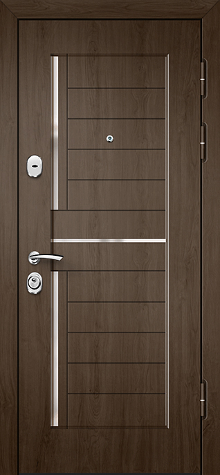 Глубокий оттенок венге всегда выглядит благородно и современно, а декоративная панель придаёт полотну завершённый стильный образ. Дверь МДФ цвета венге с внешней декоративной панелью №538 подходит для установки как в частных домах, так и в квартирах или офисах, где ценят сочетание надёжности и эстетики. Плиты МДФ отличаются прочностью, стойкостью к мелким механическим повреждениям и долго сохраняют первоначальный вид без потери насыщенности цвета. Конструкция выполнена на основе стального каркаса с листом металла толщиной 2 мм и рёбрами жёсткости, что обеспечивает высокий уровень прочности. Два контура уплотнения повышают комфорт эксплуатации, защищая от сквозняков. Дополнительно дверь можно оснастить шумо- и теплоизоляцией, зеркалом, стеклопакетом или коваными элементами, сделав её не только практичной, но и индивидуальной деталью интерьера. Дверь МДФ цвета венге с внешней декоративной панелью №538 от производителя: быстрое изготовление и монтаж в Протвино, индивидуальные размеры, широкий выбор материалов и фурнитуры, официальная гарантия до 10 лет.