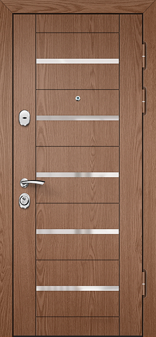 Входная дверь с зеркальным полотном №53 выделяется тем, что зеркало занимает почти всю внутреннюю поверхность, превращая дверь не просто в защитный элемент, а в полноценную часть интерьера. Такое решение особенно удобно для квартир и офисов, где зеркало необходимо ежедневно, а отдельное место для него найти непросто. Каркас изготовлен из профильной трубы и усилен рёбрами жёсткости, стальной лист толщиной 2 мм обеспечивает прочность и устойчивость к нагрузкам. В отделке использованы панели МДФ с ПВХ-покрытием, которые стойко переносят повседневные испытания и сохраняют внешний вид долгие годы. Два контура уплотнения защищают от сквозняков и уличного шума, а возможность выбрать размеры и направление открывания позволяет адаптировать модель для частных домов и городских квартир. Входная дверь с зеркальным полотном №53 от производителя: быстрое изготовление и монтаж в Протвино, индивидуальные размеры, широкий выбор материалов и фурнитуры, официальная гарантия до 10 лет.