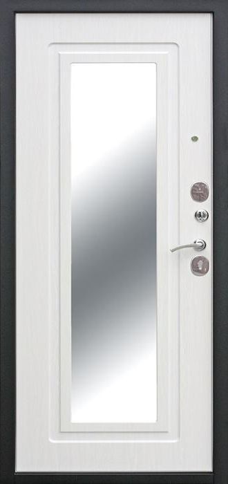 Железная дверь входная в квартиру с зеркалом №68 сочетает в себе надежность металла и практичность продуманного дизайна. Снаружи она покрыта молотковым напылением, известным своей устойчивостью к сколам и царапинам, а также способностью долго сохранять аккуратный внешний вид даже при активной эксплуатации. Внутренняя сторона оформлена накладкой из МДФ, что делает её гармоничным элементом интерьера и добавляет уюта. Встроенное зеркало не только удобно в повседневной жизни, но и визуально расширяет пространство прихожей. Основа конструкции выполнена из профильных труб с листом стали толщиной 2 мм, что гарантирует прочность и долговечность. Два контура уплотнения защищают от сквозняков и уличного шума, а наличие терморазрыва в коробке и полотне препятствует промерзанию в холодное время года. Такая дверь станет надежным и функциональным решением для квартиры, офиса или загородного дома. Железная дверь входная в квартиру с зеркалом №68 от производителя: быстрое изготовление и монтаж в Протвино, индивидуальные размеры, широкий выбор материалов и фурнитуры, официальная гарантия до 10 лет.