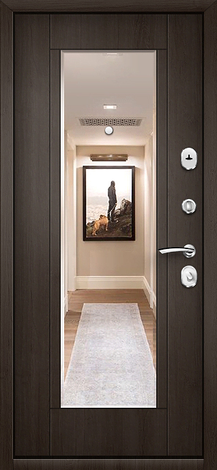 Входная дверь с зеркалом внутри №71 удачно сочетает практичность и надежность, оставаясь при этом стильным элементом интерьера. Она подходит для квартиры, офиса или частного дома, создавая удобство в быту и подчеркивая статус владельца. Внешняя сторона покрыта порошковой окраской, устойчивой к царапинам и перепадам температуры, что гарантирует долговечность и сохранение привлекательного вида. Внутри установлена накладка из МДФ, которая придает поверхности уют и делает её гармоничной частью интерьера. Зеркало на внутренней стороне экономит пространство прихожей и добавляет ей визуальной глубины. Каркас из профильной трубы с листом стали толщиной 2 мм и ребрами жесткости обеспечивает прочность и устойчивость ко взлому. Два контура уплотнителей создают дополнительную защиту от сквозняков и пыли, а терморазрыв в коробке и полотне предотвращает промерзание зимой. Для безопасности предусмотрены два замка российского производства с ригельными системами, при желании возможна замена на замки премиальных марок или установка умных электронных решений. Дверь входная с зеркалом внутри №71 от производителя: быстрое изготовление и монтаж в Протвино, индивидуальные размеры, широкий выбор материалов и фурнитуры, официальная гарантия до 10 лет.