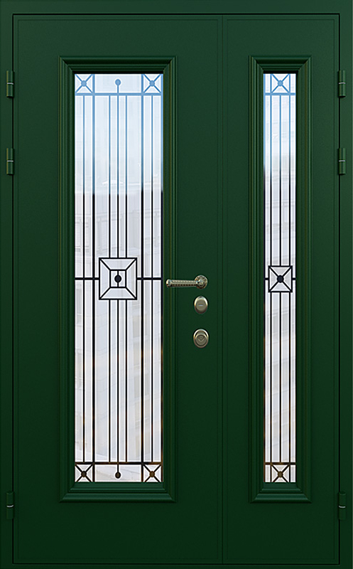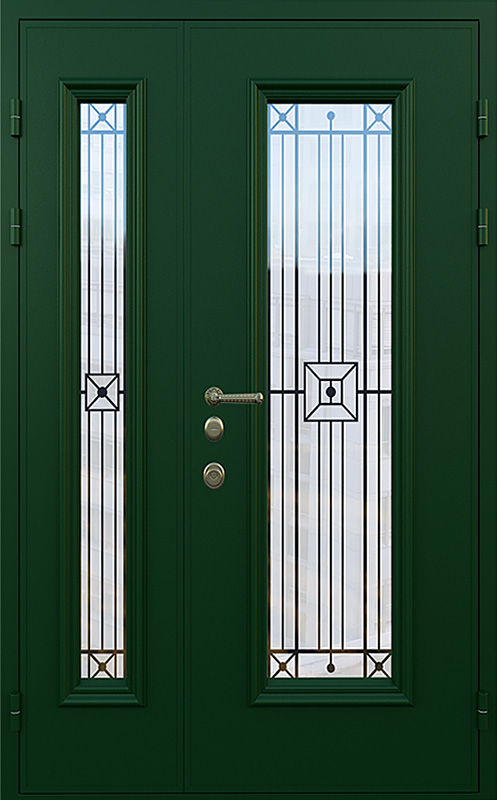 Зеленая полуторная дверь со стеклопакетом для частного дома №18 — это идеальный выбор для тех, кто хочет добавить в свой дом надежность и стиль. Элементы декора, такие как багет и ковка, придают двери элегантный вид, который идеально гармонирует с фасадом загородного дома. Панели МДФ с ПВХ-покрытием, использованные для внешней и внутренней отделки, обеспечивают высокую стойкость к механическим повреждениям и внешним воздействиям, сохраняя прекрасный внешний вид на долгое время. Зеленая полуторная дверь со стеклопакетом для частного дома №18 от производителя: быстрое изготовление и монтаж в Протвино, индивидуальные размеры, широкий выбор материалов и фурнитуры, официальная гарантия до 10 лет.