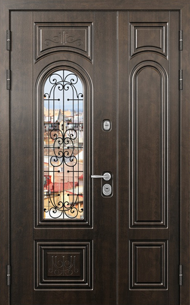 Двупольная стальная дверь со стеклопакетом и кованым узором №24 станет отличным выбором для тех, кто ценит не только безопасность, но и стиль. Внешняя и внутренняя отделка выполнены из МДФ, что придает двери элегантный и современный вид, а также обеспечивает высокую устойчивость к механическим повреждениям и износу. Стеклопакет и кованые элементы добавляют изысканности и уникальности, при этом сохраняя прочность конструкции. Двупольная стальная дверь со стеклопакетом и кованым узором №24 от производителя: быстрое изготовление и монтаж в Протвино, индивидуальные размеры, широкий выбор материалов и фурнитуры, официальная гарантия до 10 лет.