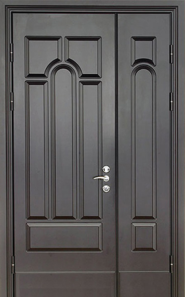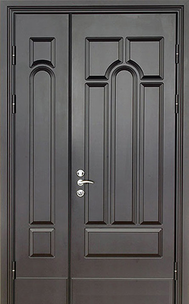 Металлическая двухстворчатая дверь для дома цвета графит №27 – это стильное и надежное решение для вашего жилья. Внешняя и внутренняя отделка выполнены из МДФ, что придает двери изысканный вид и увеличивает её стойкость к механическим повреждениям. Цвет графит придаёт двери современный и элегантный оттенок, который легко впишется в интерьер как частных домов, так и современных офисов. Металлическая двухстворчатая дверь для дома цвета графит №27 от производителя: быстрое изготовление и монтаж в Протвино, индивидуальные размеры, широкий выбор материалов и фурнитуры, официальная гарантия до 10 лет.