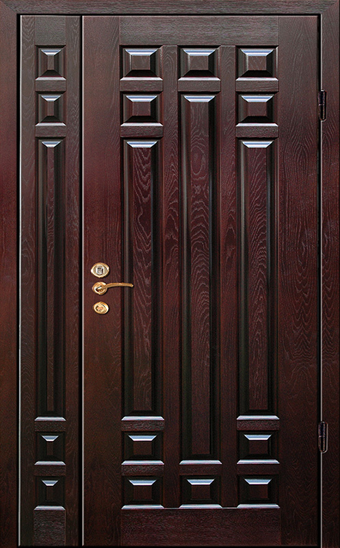 Эта двухстворчатая парадная дверь с объемной фрезеровкой №3 станет отличным акцентом в любом интерьере, добавив элегантности и солидности. Внешняя и внутренняя отделка из натурального дерева придает двери натуральный и стильный вид, который легко впишется как в классические, так и современные дизайны. Прочная конструкция двери с каркасом из профильной трубы 50х25 мм и листом металла толщиной 2 мм гарантирует долговечность и защиту. Ребра жесткости из профильных труб 40х25 мм повышают ее устойчивость к нагрузкам. Замки "Просам" и "Мосрентген" с тремя ригелями обеспечивают надежную защиту. Возможность выбора отделки и установки дополнительных элементов, таких как зеркало, стеклопакет или кованые детали, позволяет сделать дверь уникальной и подходящей под любые требования. Терморазрыв полотна и коробки способствует улучшению теплоизоляции. Вдобавок можно оснастить дверь современными замками и видеодомофоном для дополнительного комфорта и безопасности. Парадная двухстворчатая дверь с объемной фрезеровкой №3 от производителя: быстрое изготовление и монтаж в Протвино, индивидуальные размеры, широкий выбор материалов и фурнитуры, официальная гарантия до 10 лет.