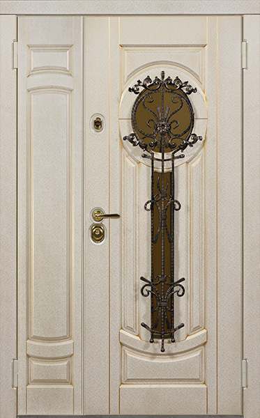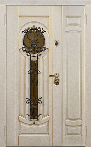 Двухстворчатая парадная дверь с ковкой и стеклом белая №30 — это сочетание красоты и надёжности. Конструкция из профильной трубы 50х25 мм и металлического листа толщиной 2 мм обеспечивает долговечность и стойкость к внешним воздействиям. Элементы ковки придают двери изысканный вид, а стеклопакет позволяет создать атмосферу лёгкости и прозрачности. Внешняя и внутренняя отделка выполнены из плиты МДФ, что делает дверь не только привлекательной, но и устойчивой к механическим повреждениям. Для дополнительной герметичности используются уплотнители с двумя контурами, а блокираторы обеспечат безопасность. Вариативность размеров и возможность добавления дополнительных опций, таких как шумо- и теплоизоляция, делают эту модель универсальной для установки в любом интерьере. Двухстворчатая парадная дверь с ковкой и стеклом белая №30 от производителя: быстрое изготовление и монтаж в Протвино, индивидуальные размеры, широкий выбор материалов и фурнитуры, официальная гарантия до 10 лет.