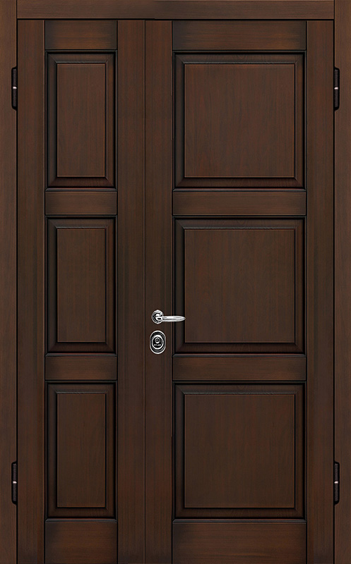 Двойная филенчатая дверь для загородного дома венге №7 сочетает в себе элегантность и прочность. Ее внешняя отделка выполнена из панелей МДФ с ПВХ, что придает двери современный вид, а также обеспечивает устойчивость к механическим повреждениям и долговечность. Каркас из профильной трубы 50х25 мм и полотно толщиной 2 мм гарантируют надежность и устойчивость к нагрузкам. Ребра жесткости из профильных труб 40х25 мм усиливают конструкцию, а уплотнение с двумя контурами защищает от проникновения влаги и пыли. Замки "Просам" и "Мосрентген" с тремя ригелями обеспечивают высокий уровень безопасности. В дверь можно добавить дополнительные элементы, такие как стеклопакет, зеркало или кованые детали, что позволяет адаптировать ее под любой интерьер. Терморазрывы в коробке и полотне способствуют лучшей теплоизоляции, обеспечивая комфорт в любое время года. Двойная филенчатая дверь для загородного дома венге №7 от производителя: быстрое изготовление и монтаж в Протвино, индивидуальные размеры, широкий выбор материалов и фурнитуры, официальная гарантия до 10 лет.