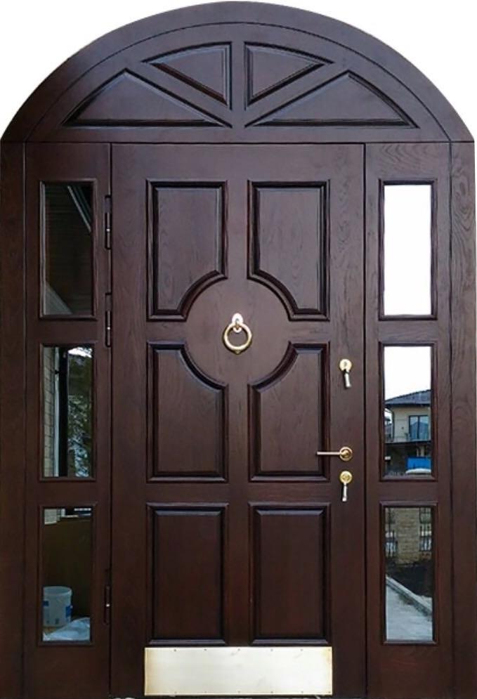 Арочная входная дверь с витражом в частный дом №69