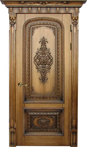 Входная дверь со стеклопакетом и патиной для загородного дома белая №29
