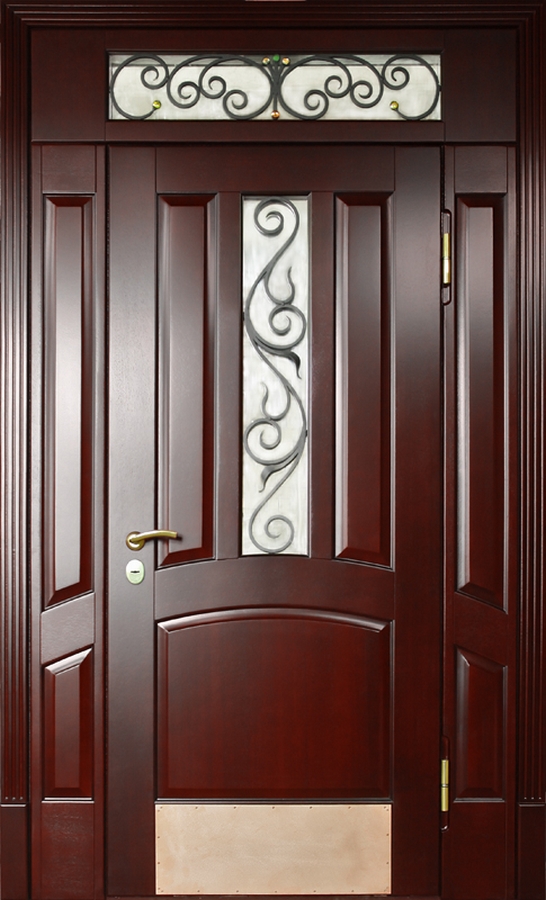 Красивая шпонированная дверь с надежной фурнитурой и ковкой "лоза" №33 идеально дополнит интерьер вашего частного дома или коттеджа. Внешняя и внутренняя отделка выполнены из натурального дерева, что придает двери элегантность и стиль. Профильная труба 50х25 мм используется для каркаса и полотна, а лист металла толщиной 2 мм и ребра жесткости из профильных труб 40х25 мм обеспечивают прочность и долговечность. Несмотря на отсутствие терморазрыва, дверь гарантирует надежную защиту и теплоизоляцию благодаря двум контурам уплотнения. Элементы ковки "лоза" придают двери особое очарование, сочетая практичность с эстетикой. Эта дверь — идеальный выбор для тех, кто ценит стиль, качество и безопасность. Красивая шпонированная дверь с надежной фурнитурой и ковкой "лоза" №33 от производителя: быстрое изготовление и монтаж в Протвино, индивидуальные размеры, широкий выбор материалов и фурнитуры, официальная гарантия до 10 лет.