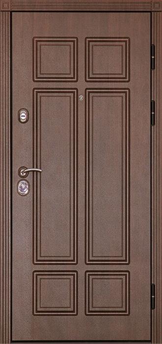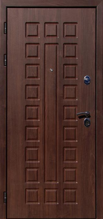 Дверь металлическая входная уличная утепленная №7 — это практичное решение для установки в частном доме, квартире или офисе, где важны защита и сохранение тепла. С обеих сторон конструкция облицована панелями МДФ с ПВХ-покрытием, которое стойко переносит перепады температуры и не теряет внешний вид даже при активной эксплуатации. В основе лежит каркас из профильных труб, усиленный стальным листом толщиной 2 мм и ребрами жесткости, что делает дверь прочной и устойчивой к внешним нагрузкам. Два контура резинового уплотнителя защищают от проникновения пыли и сквозняков. Особенность модели — наличие терморазрыва в коробке и полотне: это предотвращает промерзание металла и образование конденсата, сохраняя уют и тепло в помещении в холодный сезон. Дверь №7 сочетает надежность, современный внешний вид и функциональность, позволяя использовать её как в уличных условиях, так и внутри зданий. Дверь металлическая входная уличная утепленная №7 от производителя: быстрое изготовление и монтаж в Протвино, индивидуальные размеры, широкий выбор материалов и фурнитуры, официальная гарантия до 10 лет.