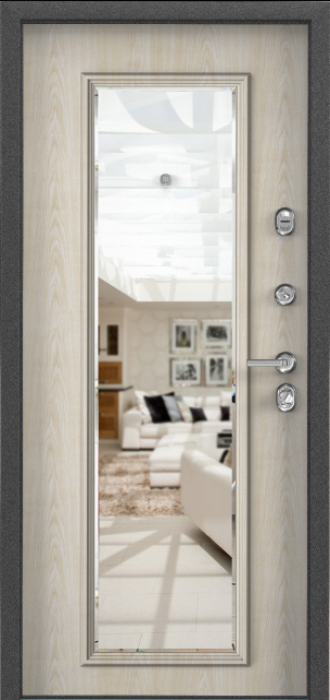 Сочетание прочной конструкции и декоративных решений делает эту модель особенно практичной для частного дома или квартиры. Каркас и полотно выполнены из профильной трубы с листом стали толщиной 2 мм, усиленные рёбрами жёсткости и блокираторами, что обеспечивает высокую надёжность. Два контура резинового уплотнителя препятствуют проникновению влаги и сквозняков, а порошковое напыление на внешней поверхности защищает металл от коррозии и сохраняет аккуратный вид даже при воздействии осадков и солнечного света. Внутренняя отделка панелями МДФ ПВХ создаёт уютный интерьерный акцент и устойчива к повседневным нагрузкам. Дверь входная металлическая уличная в дом №12 дополнена зеркалом, которое делает её не только функциональной, но и более удобной в быту. Для безопасности предусмотрены два замка российского производства — сувальдный Просам и цилиндровый Мосрентген, каждый с тремя ригелями. Дополнительно дверь можно оснастить стеклопакетом или коваными элементами, превратив её в индивидуальное решение для конкретных задач. Дверь входная металлическая уличная в дом №12 от производителя: быстрое изготовление и монтаж в Протвино, индивидуальные размеры, широкий выбор материалов и фурнитуры, официальная гарантия до 10 лет.
